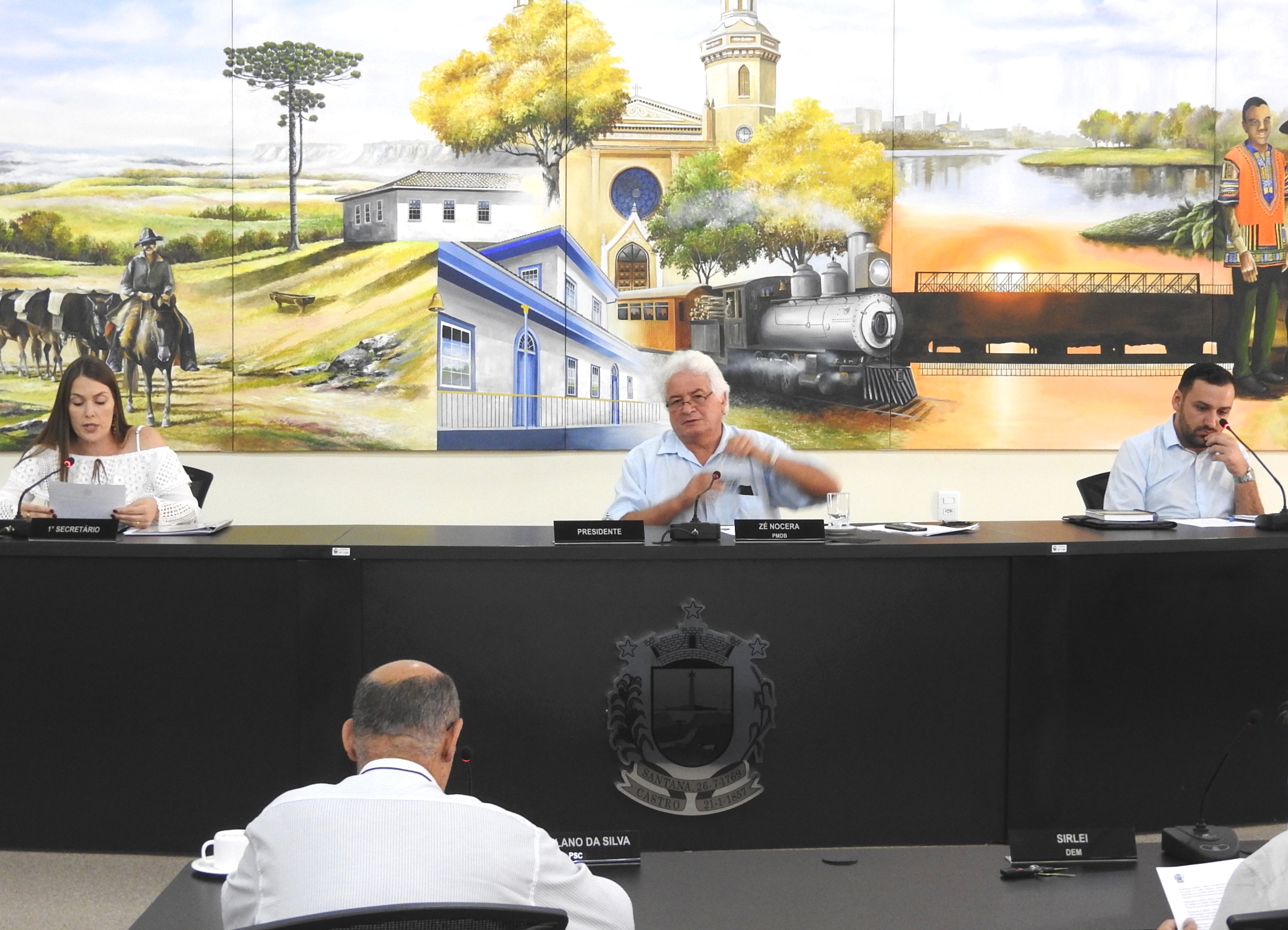 Mesa Diretora - Presidente vereador José Otávio Nocera - 1ª Secretária vereadora Maria de Fátima Antão Castro - 2º Secretário vereador Maurício Kusdra